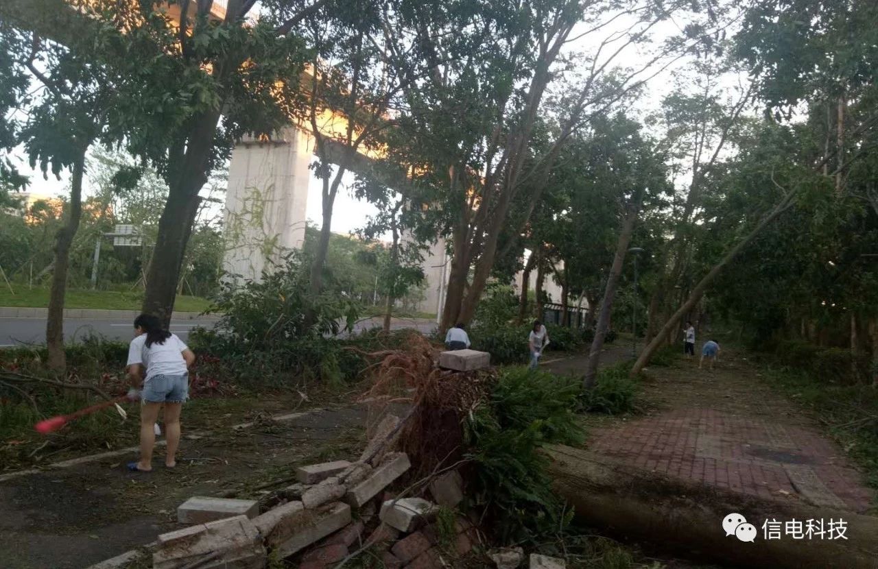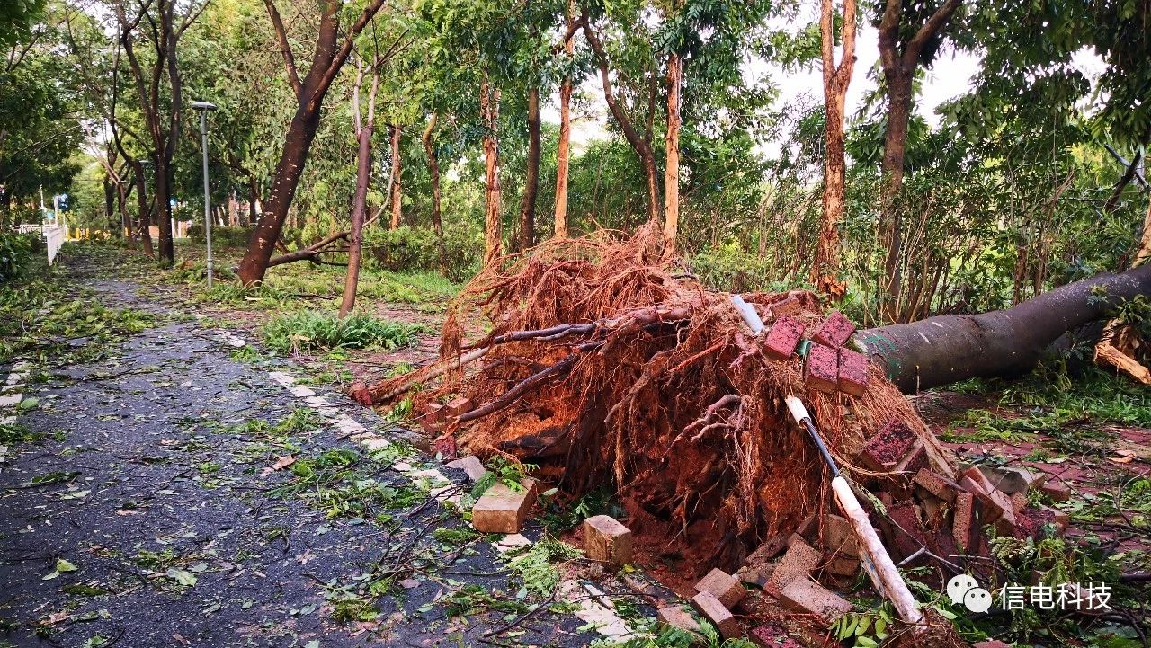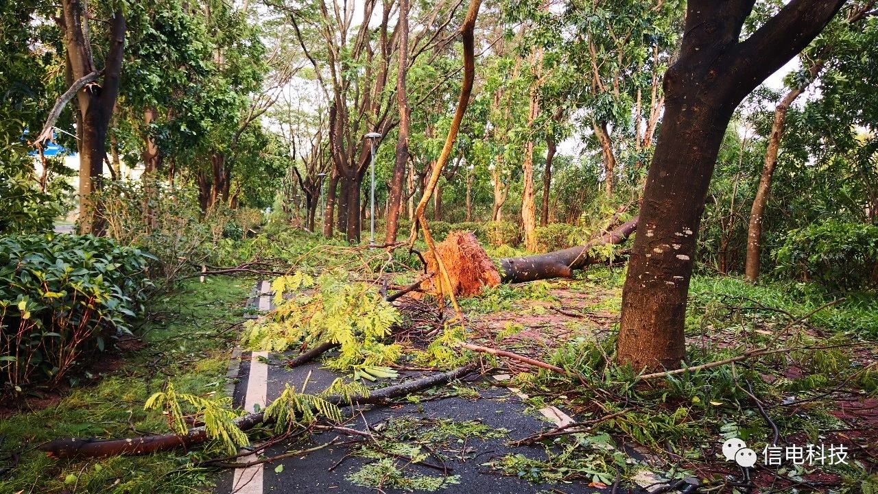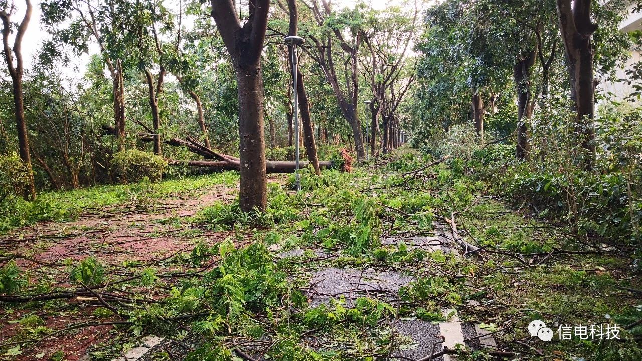 信電科技園地處深圳東部,離深圳大亞灣海邊約20公里,周邊又都是空曠地帶,雖然做了抗臺風的準備,但受到臺風的影響還是很大: