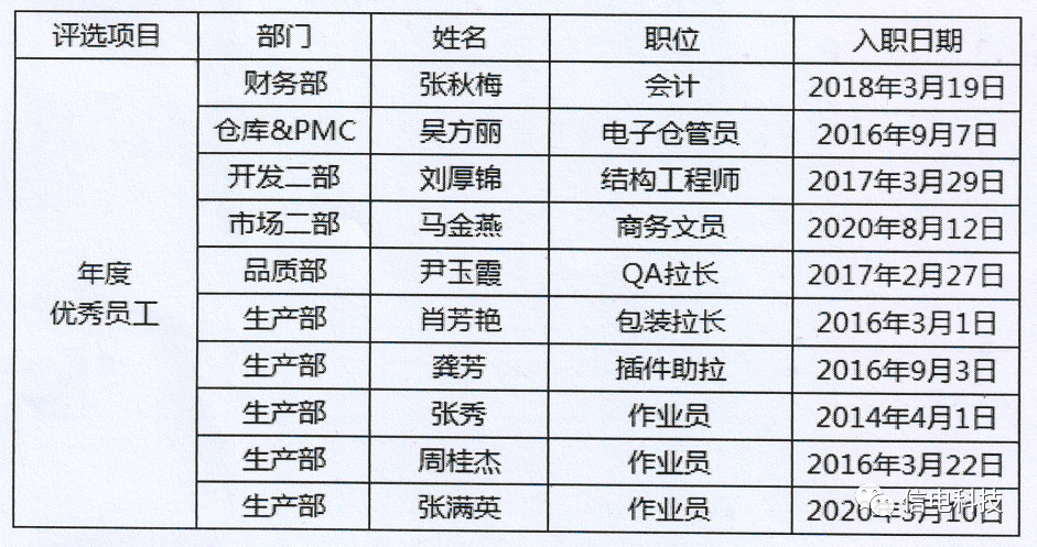 通過公開投票,10名2021年年度信電優(yōu)秀員工出爐,他們分別是: