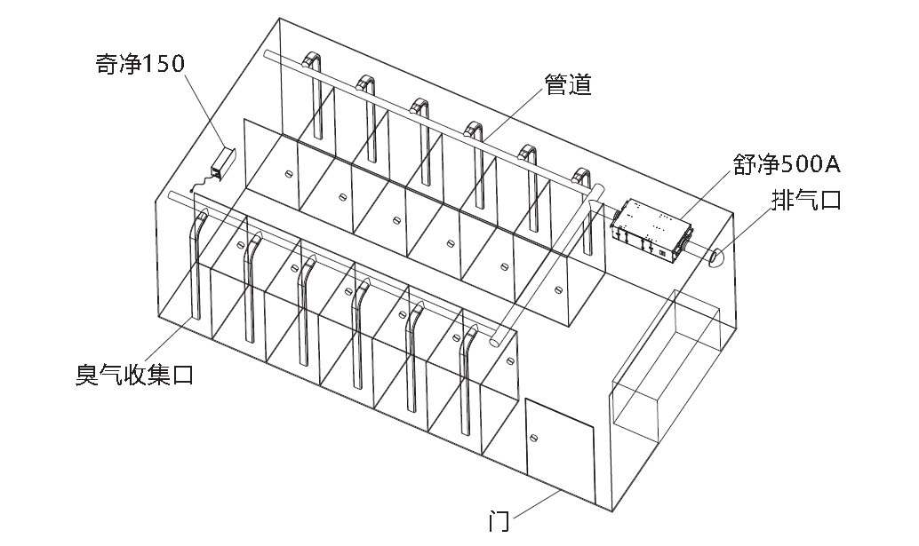 將臭氣采集后集中除臭外排,公廁內(nèi)氣壓處于負(fù)壓,